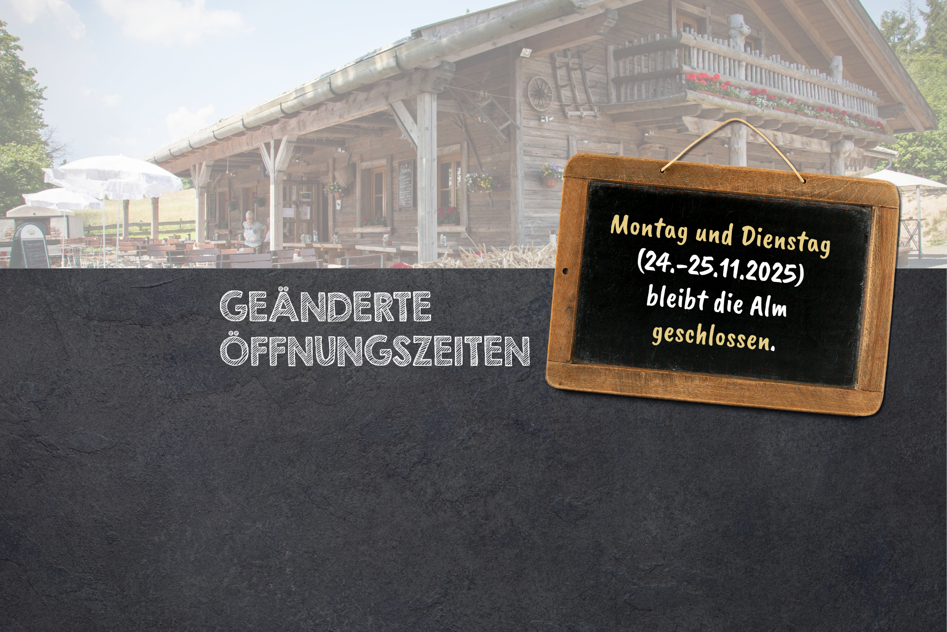 Bei uns sind Familien mit Kindern herzlich willkommen. Nicht nur der angrenzende Abenteuerspielplatz ist ein aufregendes Erlebnis, auch die Umgebung unserer Alm ist für die Kids ein richtiges Entdeckerparadies. Sie können entspannt Ihre Mahlzeit genießen, während die Kinder das Umfeld erkunden.